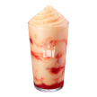 과즙 가득한 복숭아 슬러쉬 안에 톡톡 씹히는 딸기 과육이 더해진 음료