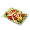 부드럽고 바삭하게 튀긴 치킨 커틀릿에 건강한 병아리콩, 옥수수가 어우러진 한 끼 든든 샐러드