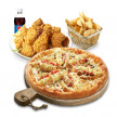 통통한 웨지감자에 매쉬포테이토가 요거트소스와 함께 어우러진 피자와 25년 전통 비법으로 더 바삭하고, 더 촉촉한 후라이드 치킨의 조합