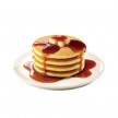 버터가 올라간 부드러운 팬케이크 위에 달콤한 메이플 시럽을 부어서 음료 등과 가볍게 먹기 좋은 팬케이크