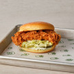 바삭하고 두툼한 치킨 통살과 양상추, 피클, 허브 마요 소스가 토핑퇸 치킨 버거 (가슴살)
