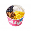 무지방 우유로 만든 요거트 아이스크림에 냉동망고, 냉동 블루베리와 블루베리 시럽, 그래놀라를 토핑하여 든든하게 즐길 수 있는 조합