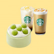 아이스 로스티드 마카다미아 라떼 T (6,500원) + (T)카페 브륄레 프라푸치노 T (6,700원) + 샤인 머스캣 생크림 케이크 (12,500원)