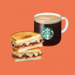 스타벅스의 깔끔하고 강렬한 에스프레소를 가장 부드럽게 잘 느낄 수 있는 커피와 바삭한 사워도우에 우유와 버터로 만든 베샤멜 소스를 바르고, 새콤달콤하게 졸여낸 발사믹 어니언과 햄, 풍성하게 녹아내리는 고소한 모짜렐라 치즈로 맛의 밸런스를 구현한 샌드위치 세트입니다.